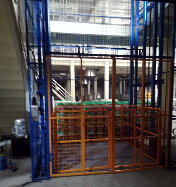 帶外防護導(dǎo)軌式液壓升降機在涂料廠安裝完成